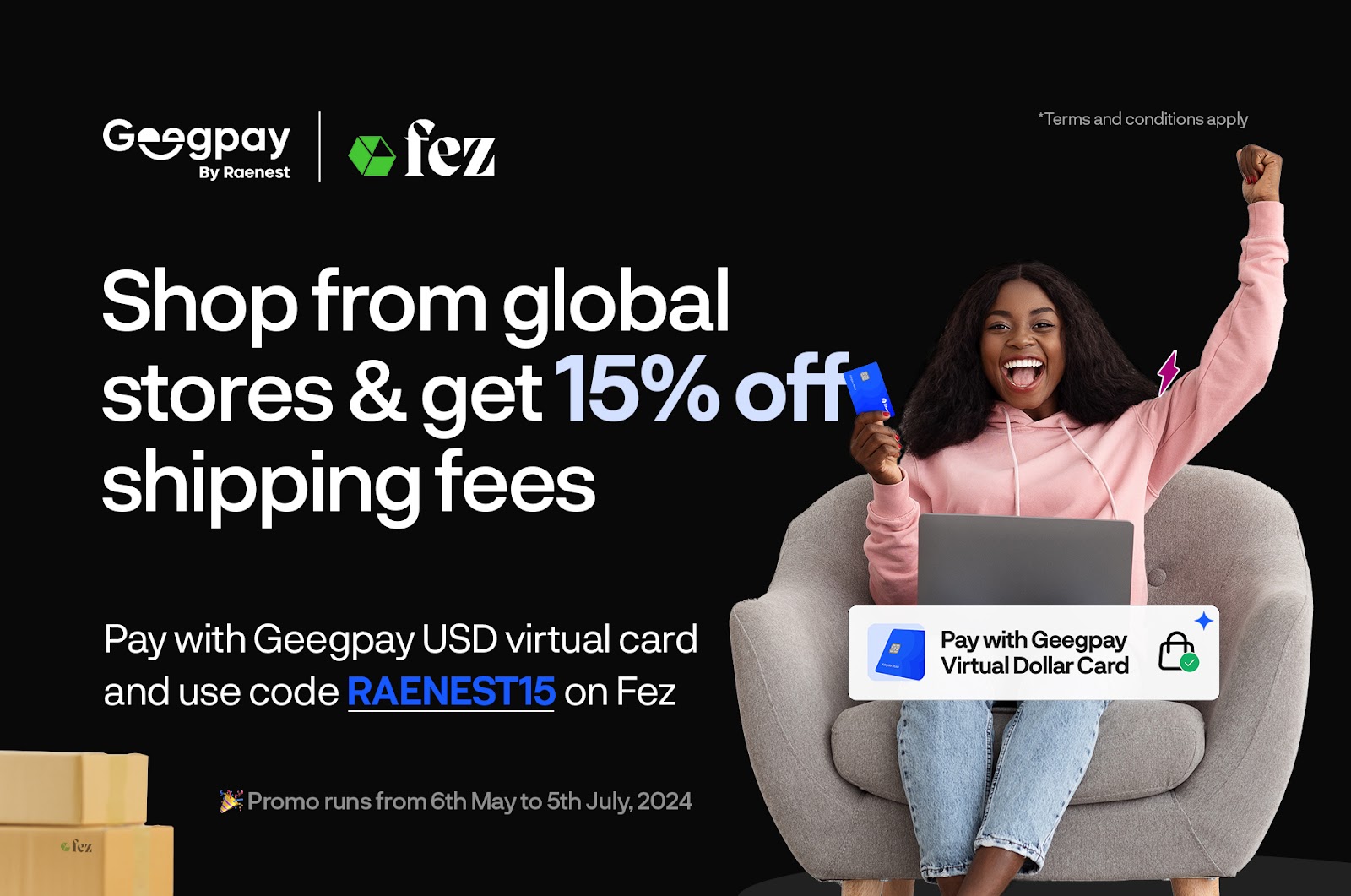 We teamed up with Fez Delivery to bring you a fantastic deal on international shipping. If you used your Geegpay virtual dollar card between May 6th and July 5th, you scored a sweet 15% discount on shipping to Nigeria for anything you purchased from an international website. We hope you took advantage of this incredible offer.
