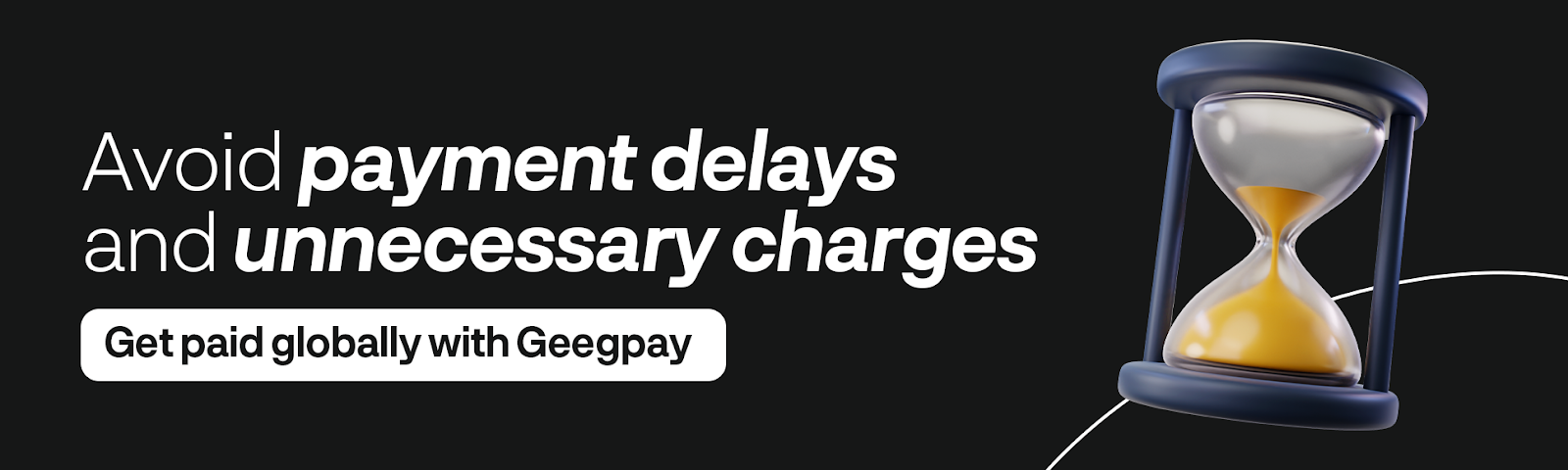 With Geegpay you can finally say goodbye to payment delays and unexpected charges when working with international clients. Global payments are faster and affordable, our rates are competitive, and transfers to your local banks are free. You can receive your earnings in USD, EUR or GBP without the usual hassle. You can also fund your Geegpay virtual dollar card from any of your accounts and shop, pay, or subscribe on your favourite international websites and apps with ease. Log in now to get started.