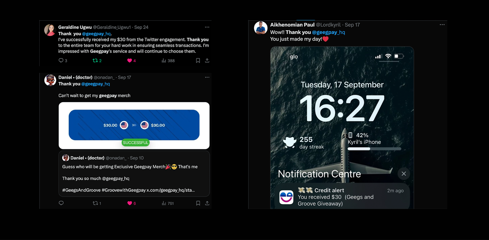 September came with some exciting freebies! We gave out merch, a Starlink device, and even some dollars to not just one, but 20 lucky winners in the #GroovewithGeegpay giveaway. And on Geegs and Groove day, we rewarded our most active guests with $30. It’s just our little way of giving back and saying thank you for sticking with us.