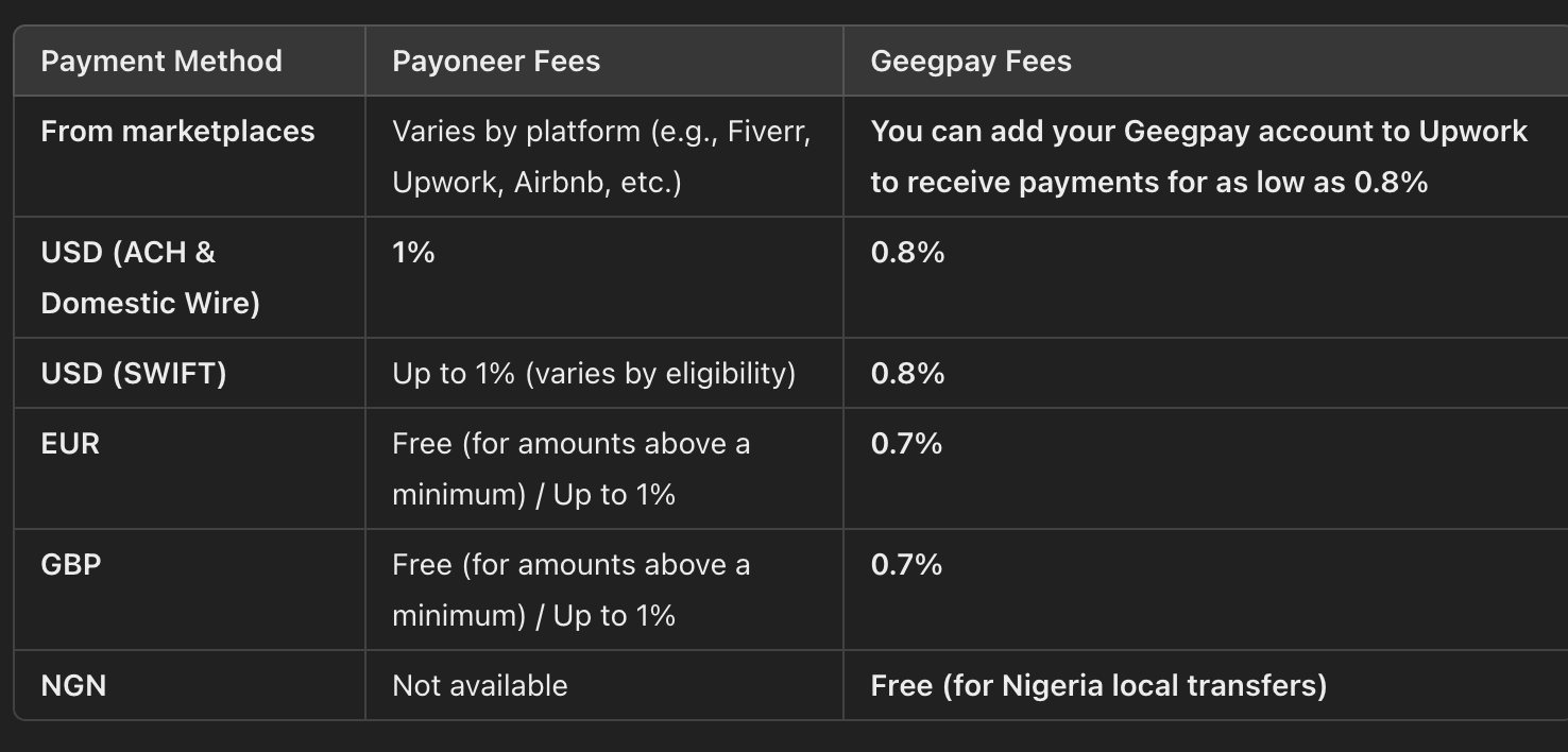 If you're a freelancer, remote worker, or digital entrepreneur, chances are you've used Payoneer at some point to receive payments from international clients. And if you're reading this, you probably also use Geegpay to withdraw, convert, or even make payments.