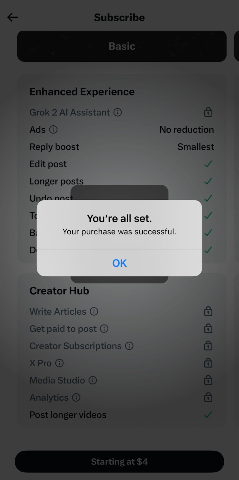 Now, you're all set to explore the features of X Premium. Depending on your plan, you can enjoy benefits like editing or undoing posts, accessing creator subscriptions and monetization tools, posting longer content, access to Grok, and more.
