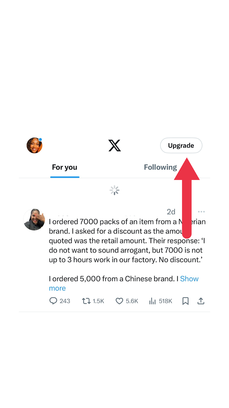 - Open the X App and tap on Upgrade.