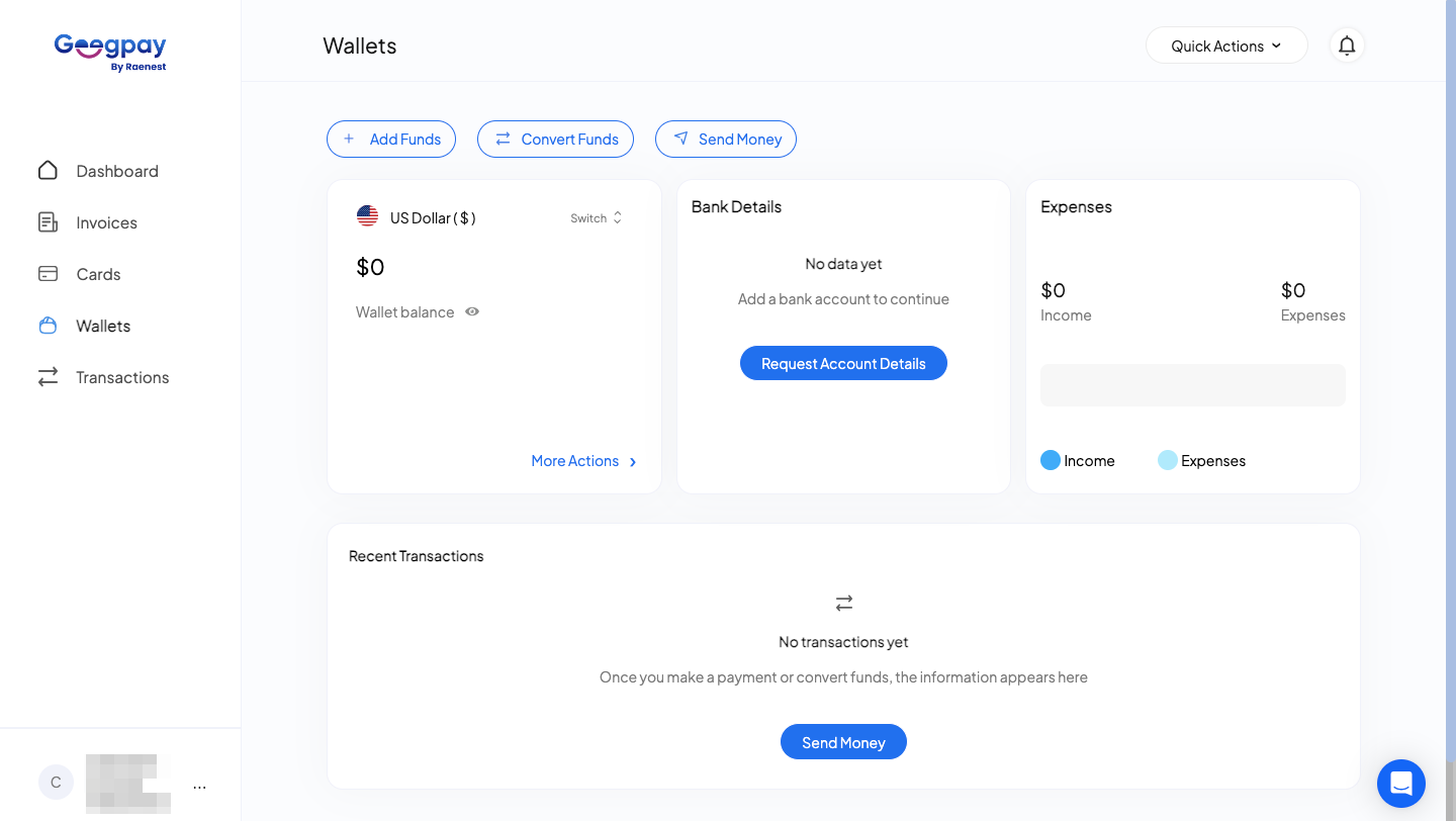 Now it's time to unleash the power of your very own USD virtual bank account. On your Geegpay dashboard click on the currency you want to open an account on and then click on request account details under “Bank Details” and there you have it! Your account is all set and ready to go. It's like having a secret vault where international payments can reach you faster than a lightning bolt!