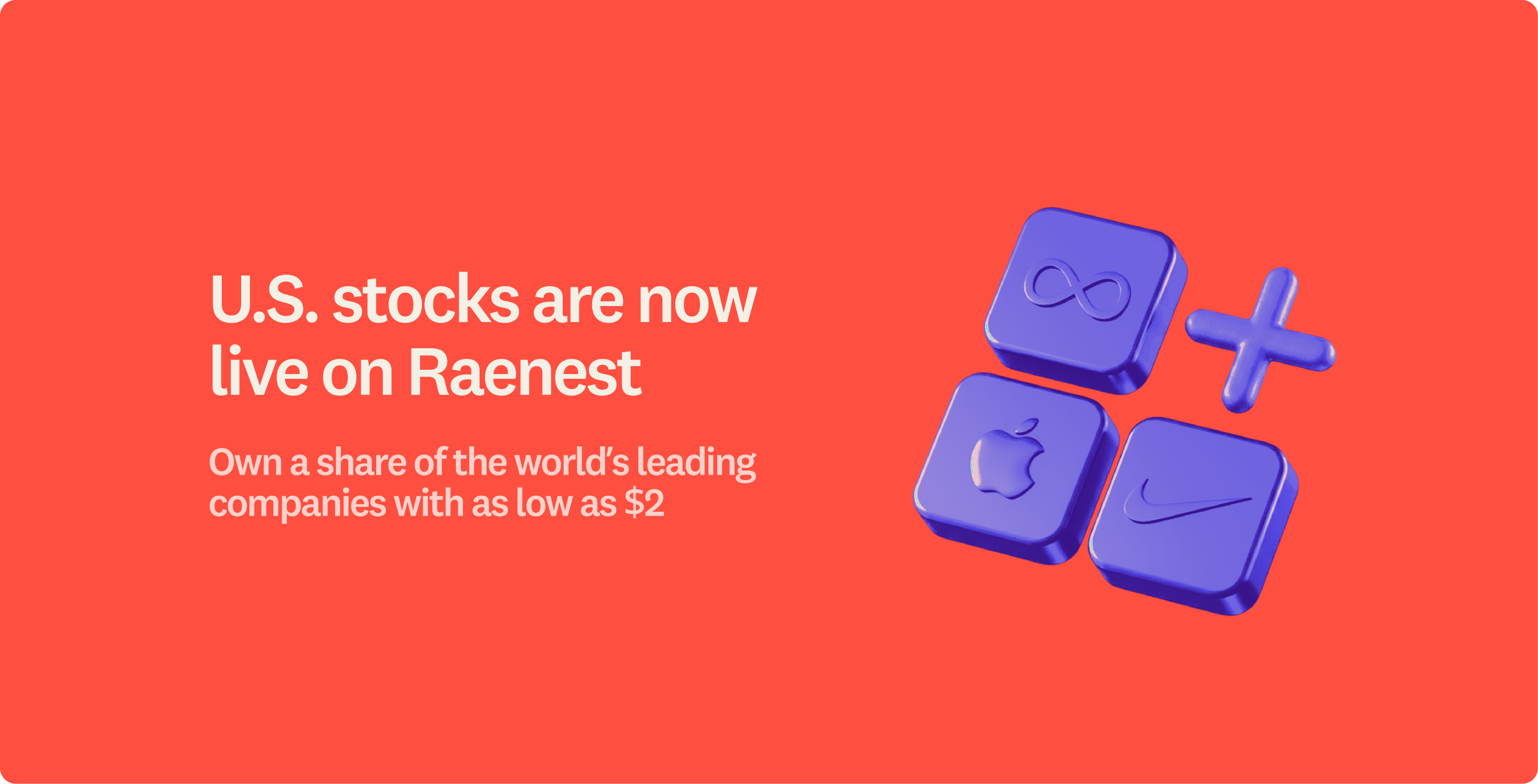 We’ve been building Raenest to help you do more than just move money; we want to help you grow it, too. That’s why, as announced at Raenest Exchange, we introduced U.S. Stocks and ETFs for you to invest in and grow your wealth. With as little as $2, you can own a share of your favourite global companies, from Apple to Tesla.