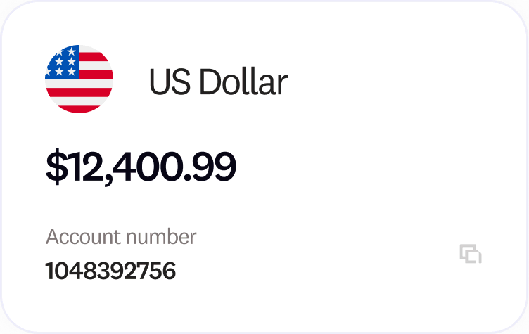 Receive international payments like a local. Open global accounts and get paid from 190 countries in major currencies.